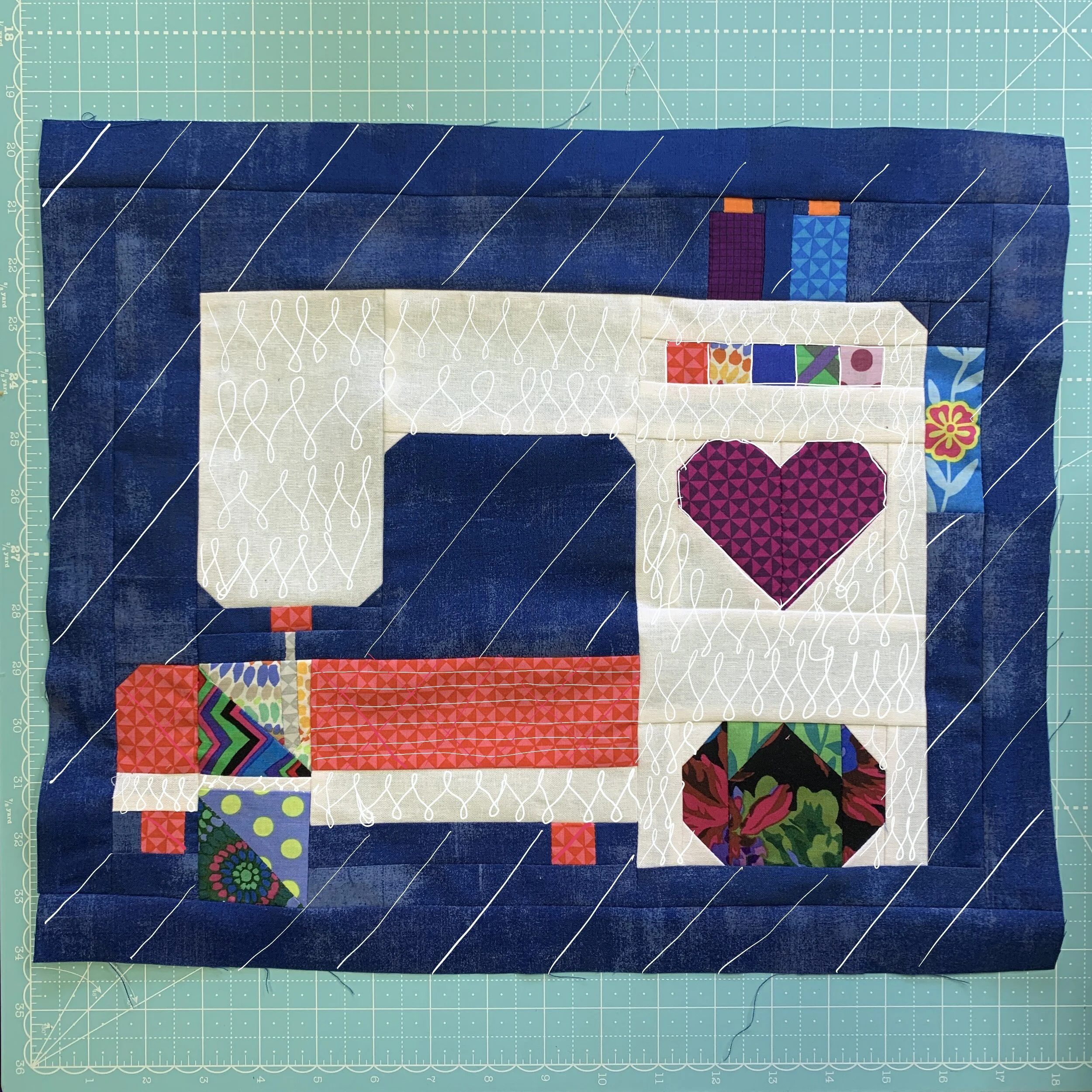 This is also from the same Procreate drawing - I have two layers turned off to show only a diagonal design and a wishbone quilt design on the sewing machine.