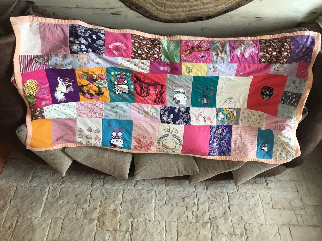 Below is a photo of the t-shirt quilt/door curtain Emanuela made for her sewing/quilt room. The other photo is another beautiful quilt made by Emanuela.
