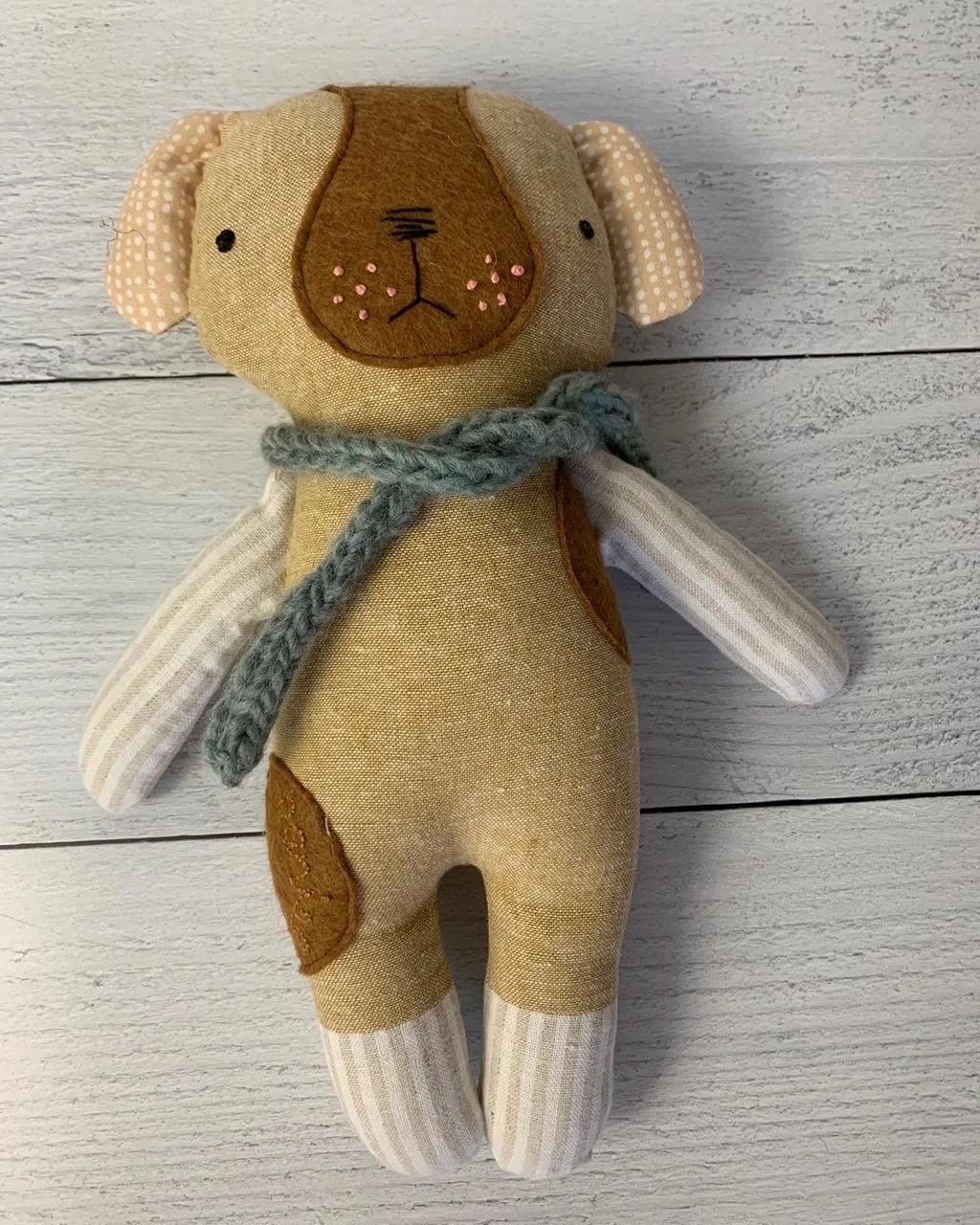 I made the Luckyjuju Puppy Doll for my baby nephew who will be 1 year old next month. The i-cord scarf instructions are included with the pattern download at Creativebug