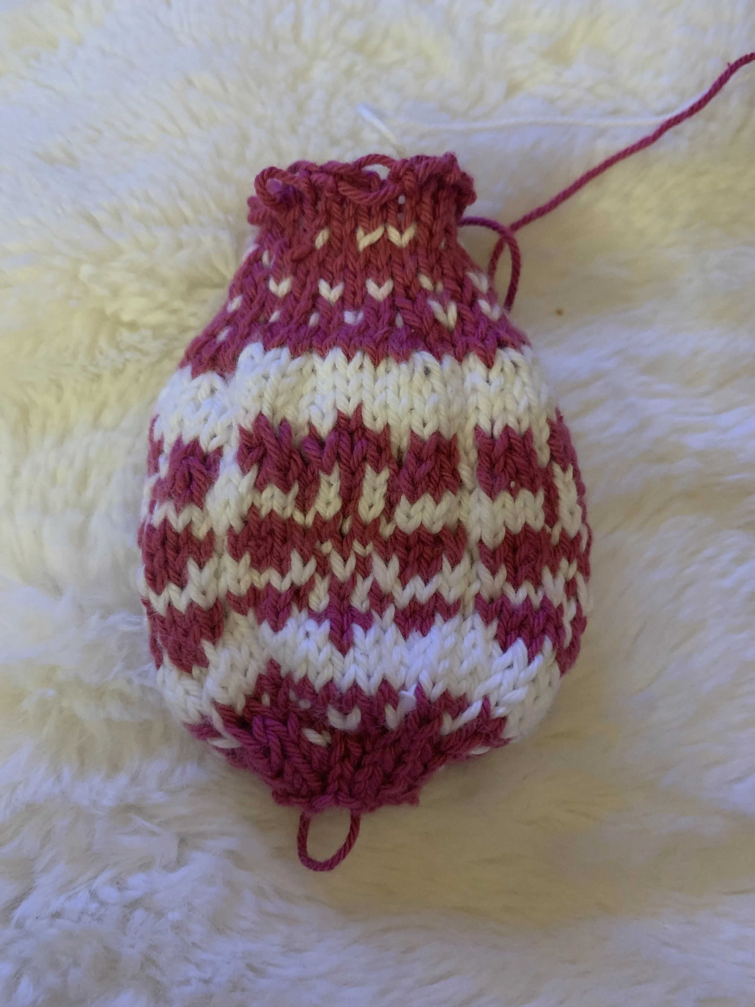 Knitting: I am still on a break but...I cannot resist making a few of the Arne & Carlos knitted easter eggs. I just completed a cute pink and white cherry blossom design. I am knitting these on 4" long double pointed needles, which is my first project on these. I would actually recommend either the 5” dpns for these eggs and also the Christmas Balls projects. Below is a photo of the cherry blossom egg I knitted - I just need to weave the ends and stuff it!