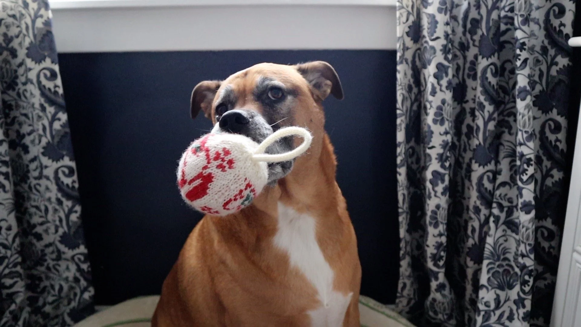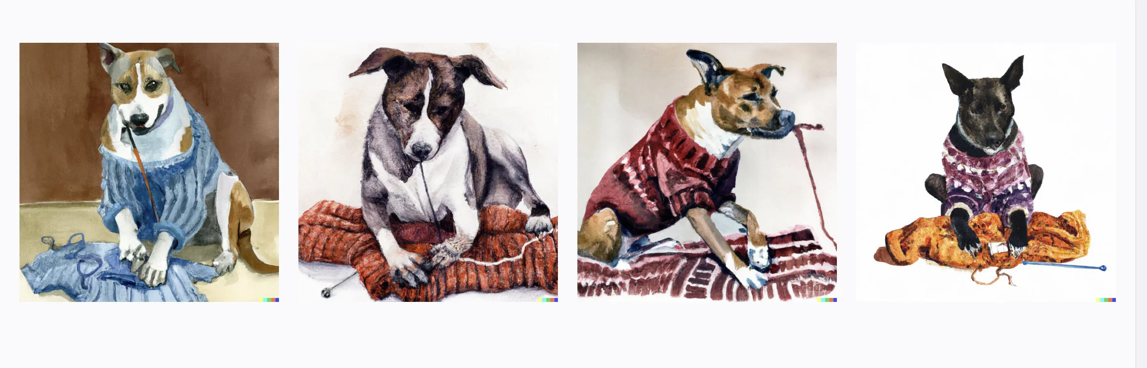 My first text request was to make a watercolor of a terrier shepherd mix dog knitting. It makes four images, and had one that was kind of close but I wanted to see if I could get a closer image that represented cooper, I had to get more detailed in my request…a watercolor of a staffordshire shepherd mix dog knitting. Poof - a super close image of cooper appeared on the screen. The dog was wearing a knit sweater and looks like he was unraveling a knit blanket. Photos of these will be in my podcast blog post at makeanddecorate.com